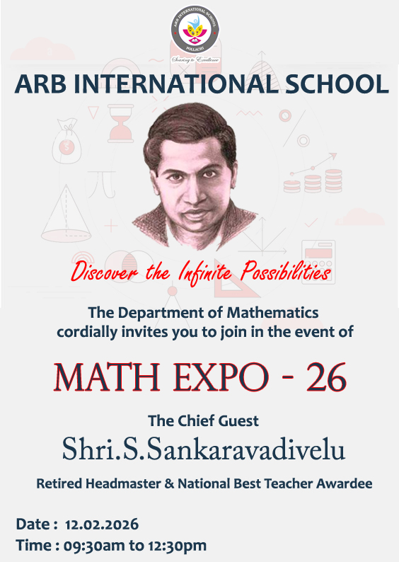ARB International School celebrated its Annual Day on 23 December 2025 at the School Assembly Ground with great enthusiasm. The event was graced by Chairman Shri R. Subramaniam, Secretary Shri P. Tamil Selvan, Managing Trustees Mrs. Maheshwari Subramaniam and Smt. Thangamani Tamil Selvan, along with Chief Guest. The programme featured a ceremonial band escort, lamp lighting, prize distribution, cultural performances and highlights of academic achievements. The Chief Guest, Dr. G. Gnana Sambandan, renowned Indian professor, Tamil scholar, orator and acclaimed Tamil film actor, inspired the gathering with his address. Referring to the age-old saying “Matha, Pitha, Guru, Deivam,” the Chief Guest highlighted the vital role teachers play in shaping the character and values of a child. The celebration concluded on a patriotic note with the National Anthem, marking the event as a grand success.